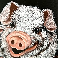 "Piggy" on a round wood slice taught by Ginny Sparlin