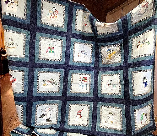 Beautiful Quilt with hand painted Snowmen squares